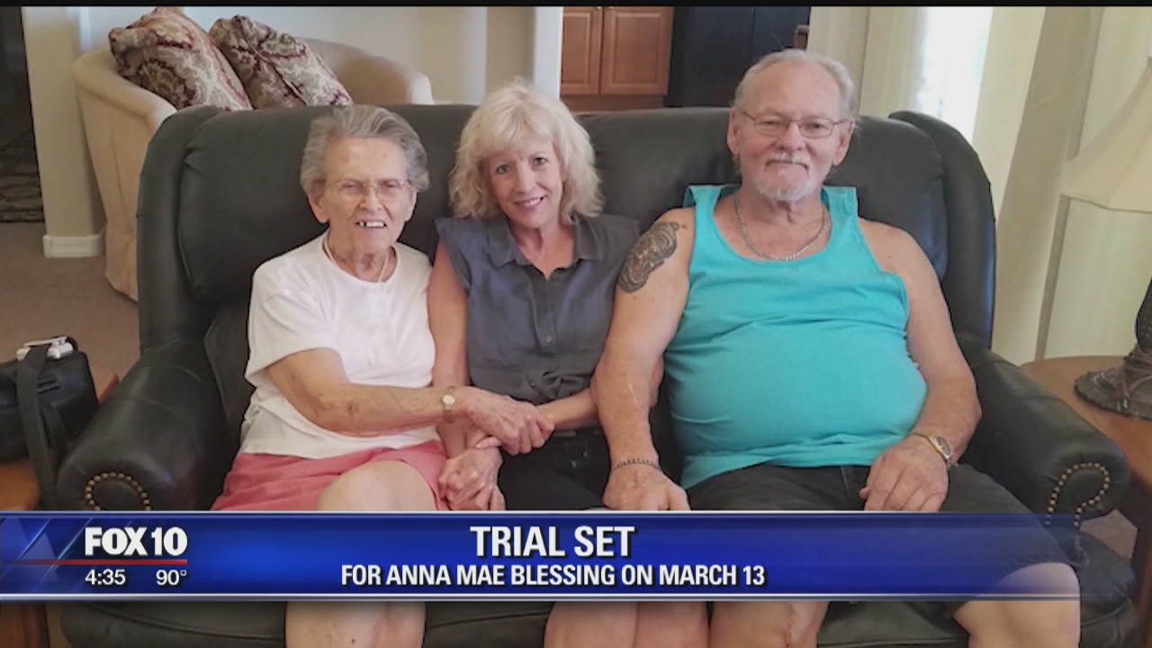 PHOENIX (AP) - A March 13 trial has been set for a 92-year-old Arizona woman charged with killing her son because he wanted to put her into assisted living. Anna Mae Blessing has pleaded not guilty to murder and other charges in the July 2 shooting death of 72-year-old Thomas Blessing at the home they shared in Fountain Hills.