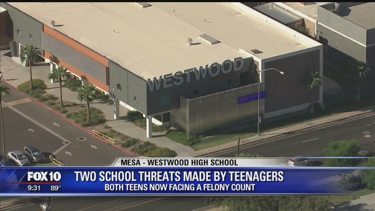 MESA, Ariz. (KSAZ) - Police say two teenagers have been arrested after two unrelated threats were made towards two Mesa schools on social media. According to the Mesa Police Department, both threats were made on September 13, with the first being aimed towards Liberty Charter School. Police say a 13-year-old student at the school posted pictures on Instagram showing a weapon and a warning about shooting up the school.