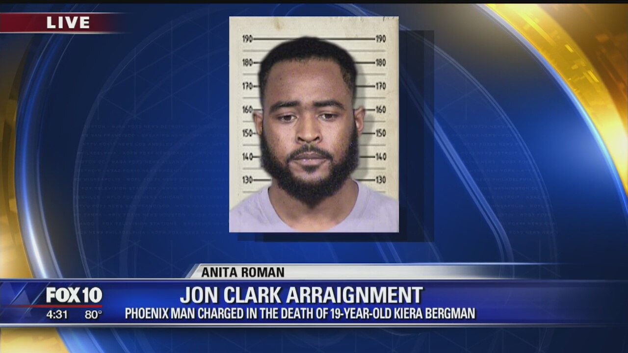 PHOENIX (KSAZ) - The man accused of killing Kiera Bergman is scheduled to appear in court on Friday where is he expected to enter his plea. Jon Clark has been charged with the murder of Bergman, who's disappearance captivated the Valley. Clark was arrested for identity theft and forgery shortly after his ex-girlfriend, Bergman, disappeared in early August.
