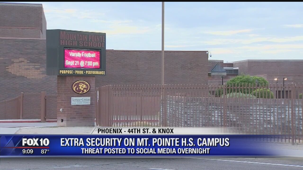AHWATUKEE, Ariz. (KSAZ) - Police and school officials are investigating a threat made towards Mountain Pointe High School in Ahwatukee. According to the Tempe Union High School District, a photo of a gun with a threat aimed towards the school was posted to an anonymous social media account on Sunday night.