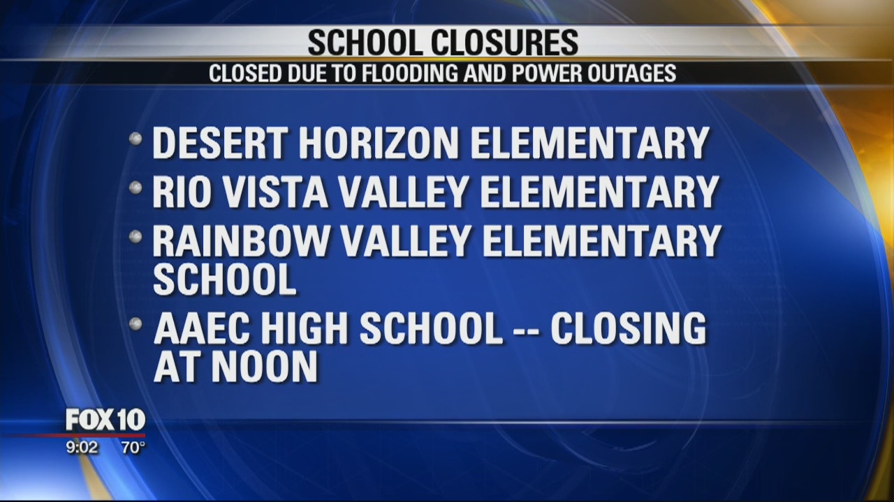 PHOENIX (KSAZ) - Several Valley schools are closed on Tuesday due to flooding from rain from remnants of Tropical Depression Rosa.