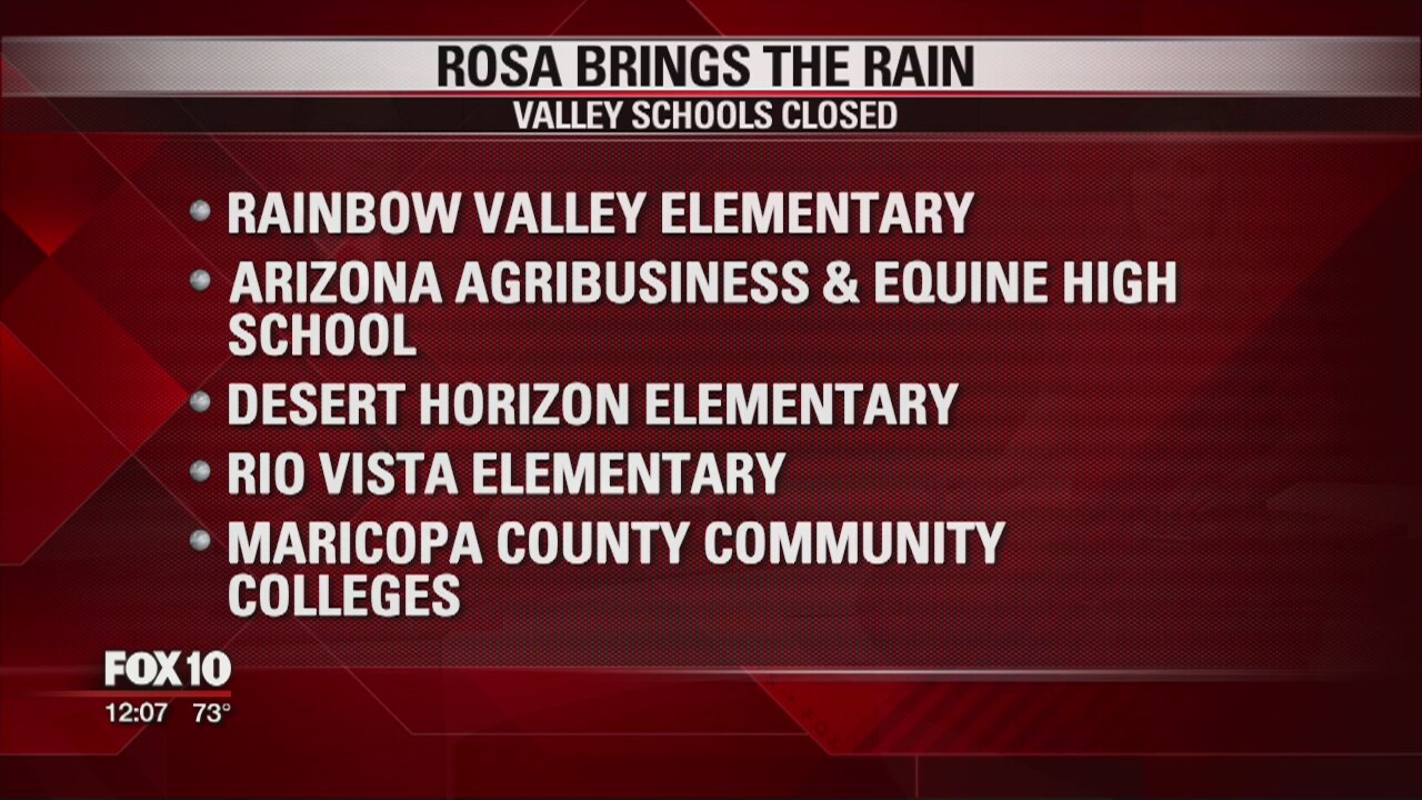PHOENIX (KSAZ) - Several Valley schools are closed on Tuesday due to flooding from rain from remnants of Tropical Depression Rosa.