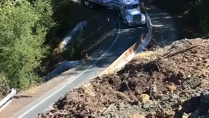 Dramatic video shows semi-truck tumbling off road