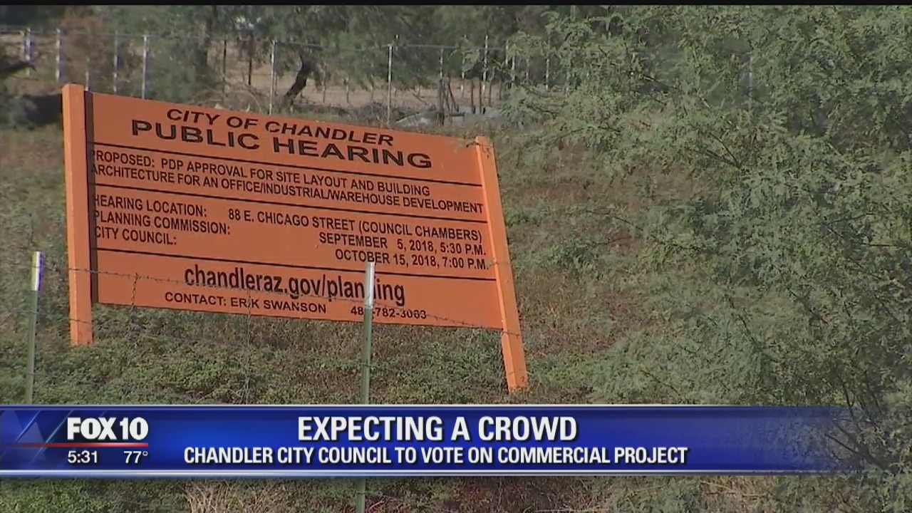 Monday night's city council meeting is expected to be heated as some residents are not happy about a new development near the Chandler airport that's expected to house offices, warehouses are provide bays for hundreds of semi trucks to load and unload 24 hours a day.