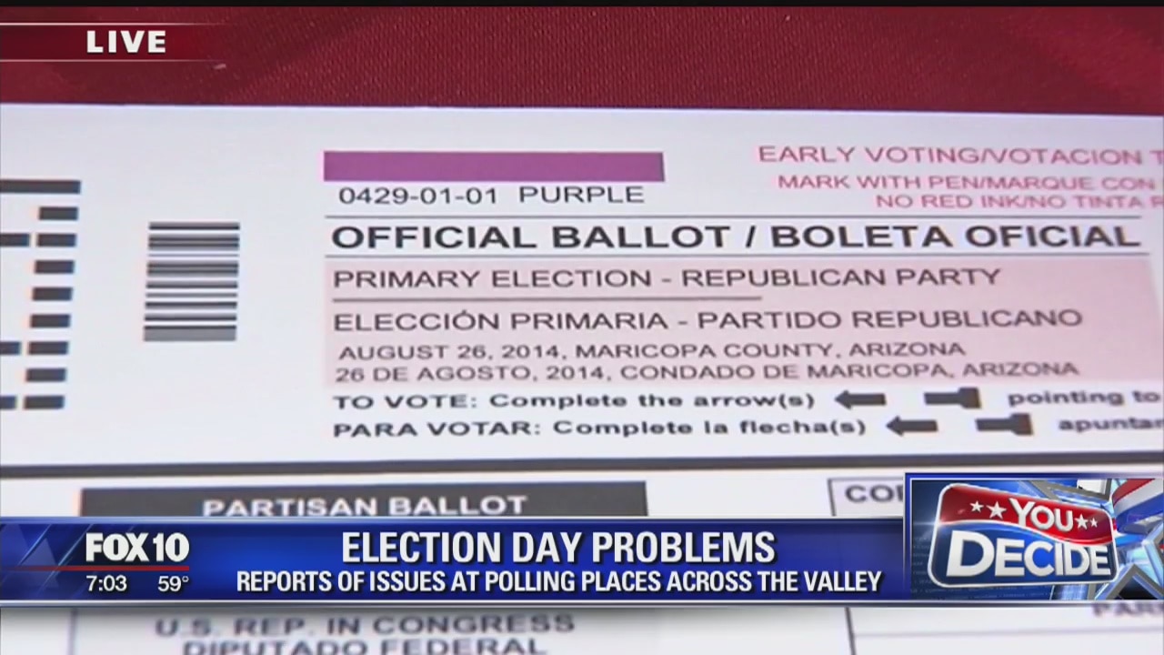 PHOENIX (KSAZ/AP) - The polls are now open in Arizona, but several polling location in the Valley are?already experiencing problems. According to Maricopa County Recorder Adrian Fontes, several polling locations in the Valley are experiencing problems as polls have just opened in Arizona.