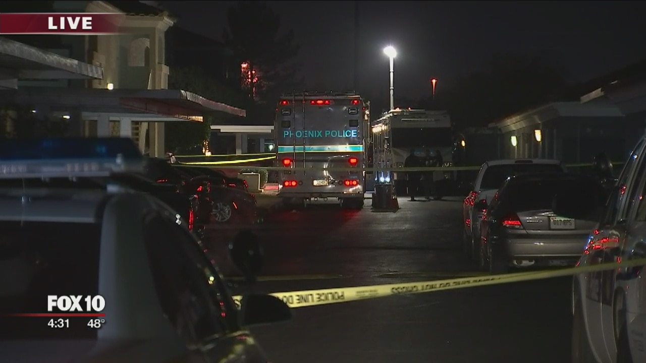PHOENIX (FOX 10) - Phoenix police say a suspect has been hospitalized following an officer-involved shooting involving the U.S. Marshals violent offenders task force. According to Phoenix police, the shooting happened at an apartment complex near 19th?Avenue and Dunlap. The suspect was a fugitive and fired shots at law enforcement before officers returned fire, striking the suspect.