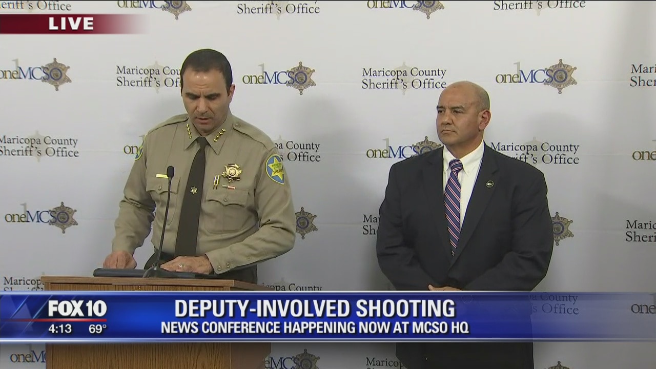 Officials with the Maricopa County Sheriff's Office (MCSO) and FBI are holding a news conference, following reports that an 18-year-old who was shot by deputies during a shooting in Fountain Hills has been charged with terrorism-related offenses.