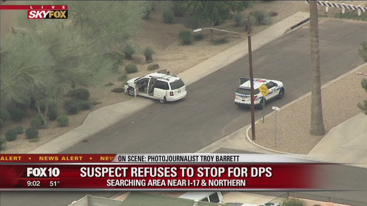 PHOENIX (FOX 10) - Authorities are searching a Phoenix neighborhood for a driver who sped away from troopers during a traffic stop on Interstate 17. According to the Arizona Department of Public Safety, troopers attempted to pull over a van on southbound I-17 for a traffic stop on Wednesday morning.