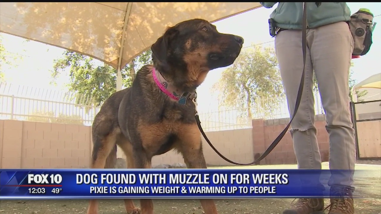 PHOENIX (FOX 10) - Just two weeks ago, 2-year-old Pixie was found wandering around a small town outside of northeast Arizona. "As far as we know, nobody was able to find the owner and it was just kind of a group of good Samaritans around town that saw this dog with a muzzle on and was like, 'oh my gosh,'" said Dr. Matthew Goetz, a veterinarian at the Arizona?Animal Welfare League.
