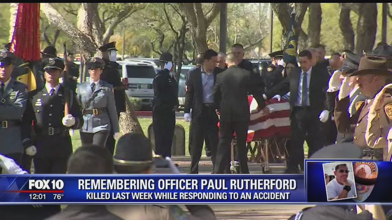 PEORIA, Ariz. (AP/FOX 10) - Hundreds gathered at Christ's Church of the Valley in Peoria for funeral services for fallen Phoenix Police Officer Paul Rutherford, including community members, family and the Phoenix police chief. It was a hero's salute, a tribute for an officer who will always be remembered.