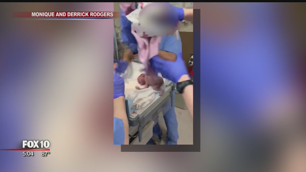 A Chandler?family is using their experience at a local hospital to bring awareness to new mothers after video shows her baby was dropped on her head after birth. FOX 10's Matt Galka reports.