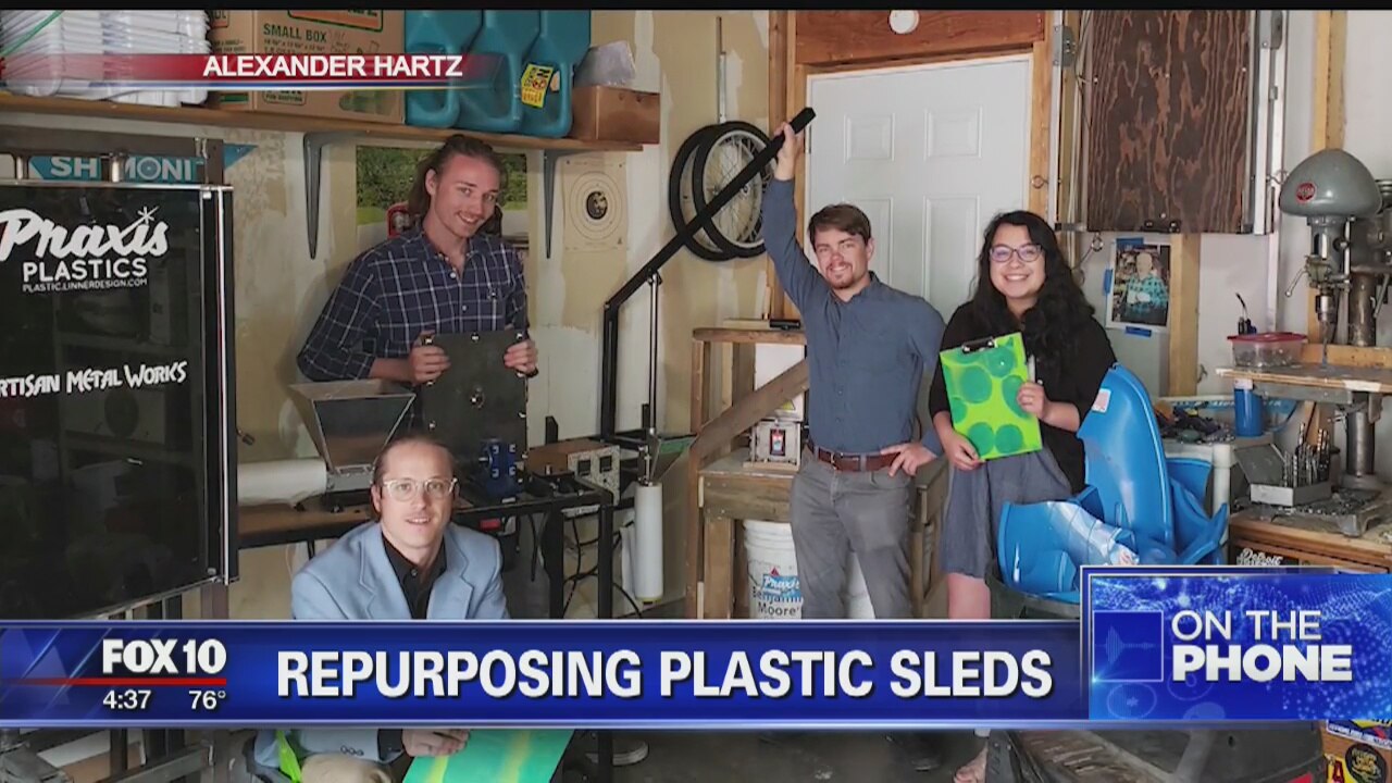 Three friends started the Praxis Plastics project where they gather broken sleds and other plastic waste to re-purpose the items. FOX 10's John Hook and Kari Lake talk to Tyler Linear about the project.