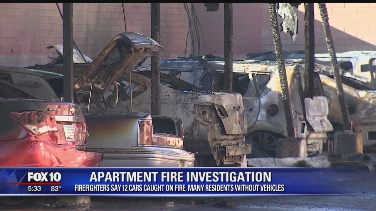 Dozens of firefighters were called to an apartment complex near 15th Avenue and Hazelwood Tuesday morning after a carport burst into flames. FOX 10's Carmen Blackwell reports.