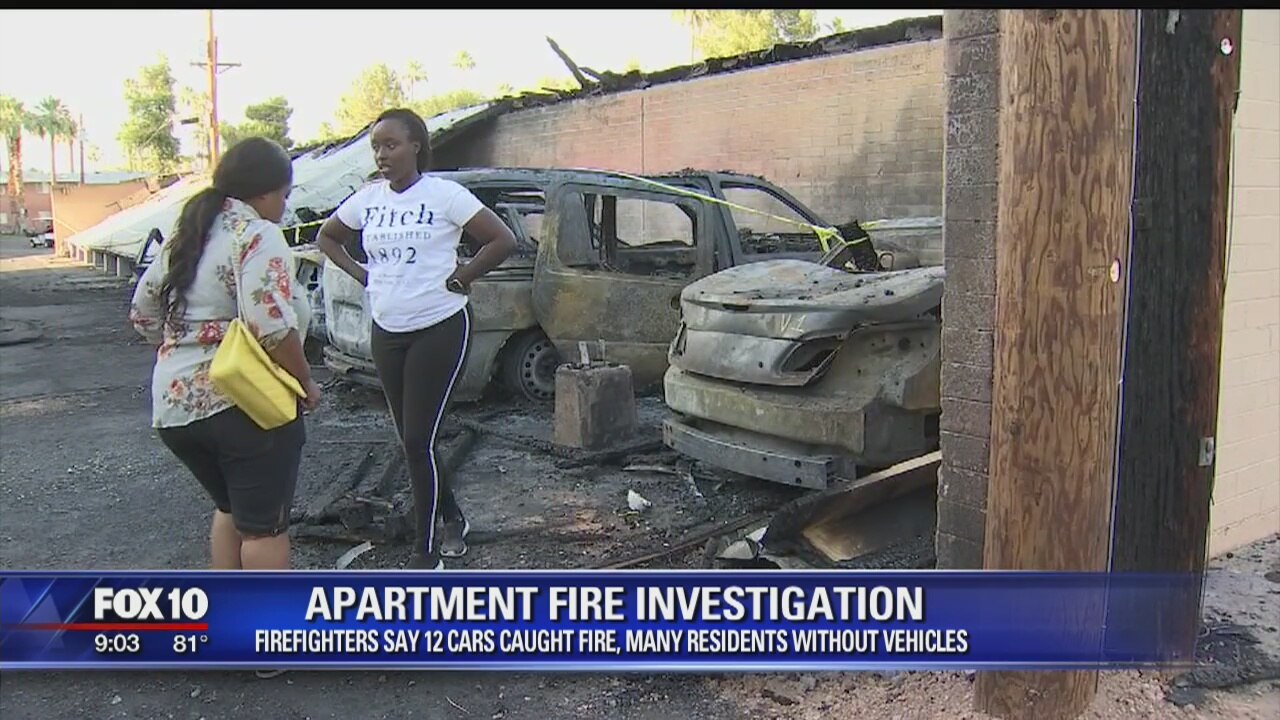 Dozens of firefighters were called to an apartment complex near 15th Avenue and Hazelwood Tuesday morning after a carport burst into flames. FOX 10's Matt Galka reports.