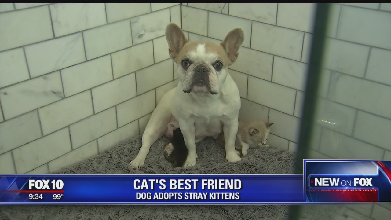 Dog adopts stray kittens