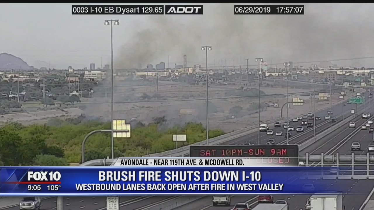 The westbound I-10 is reopen?after it was shut down for a fire along the freeway. ADOT?closed the westbound lanes for a short time because of a brush fire.?