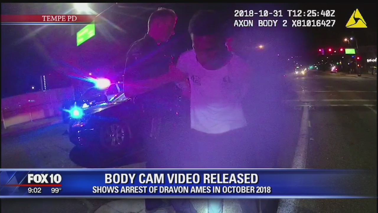 Newly released bodycam video from Tempe Police shows the arrest of 22-year-old Dravon Ames in October of 2018 while admitting to driving under the influence before crashing his car. FOX 10's Justin Lum reports.