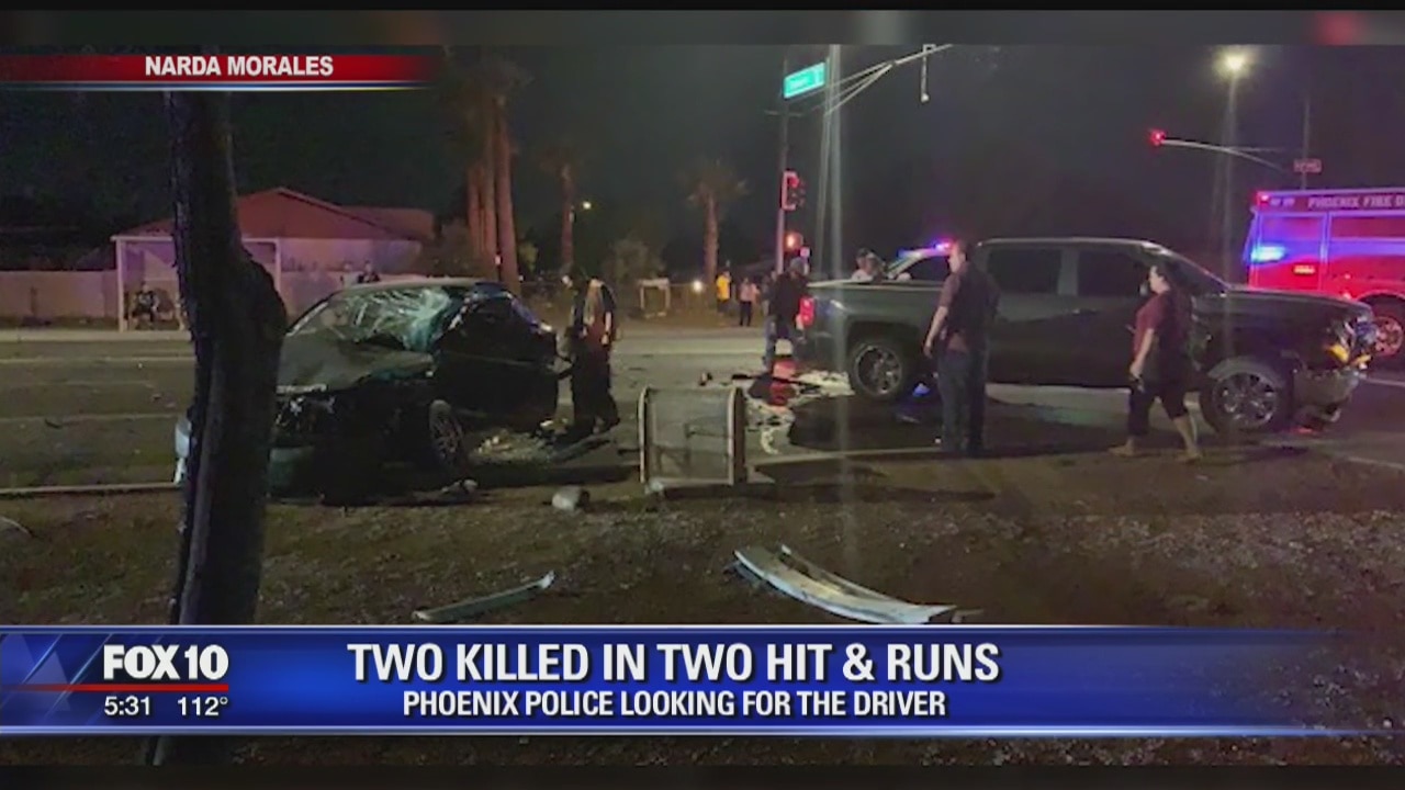 Phoenix Police officials said they are still looking for a driver who crashed into two young men in two separate hit-and-runs over the weekend. FOX 10's Nicole Garcia reports.