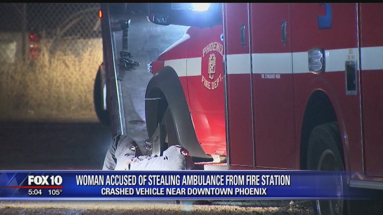 Police say a woman has been arrested after she stole an ambulance that was involved in a crash in downtown Phoenix overnight.