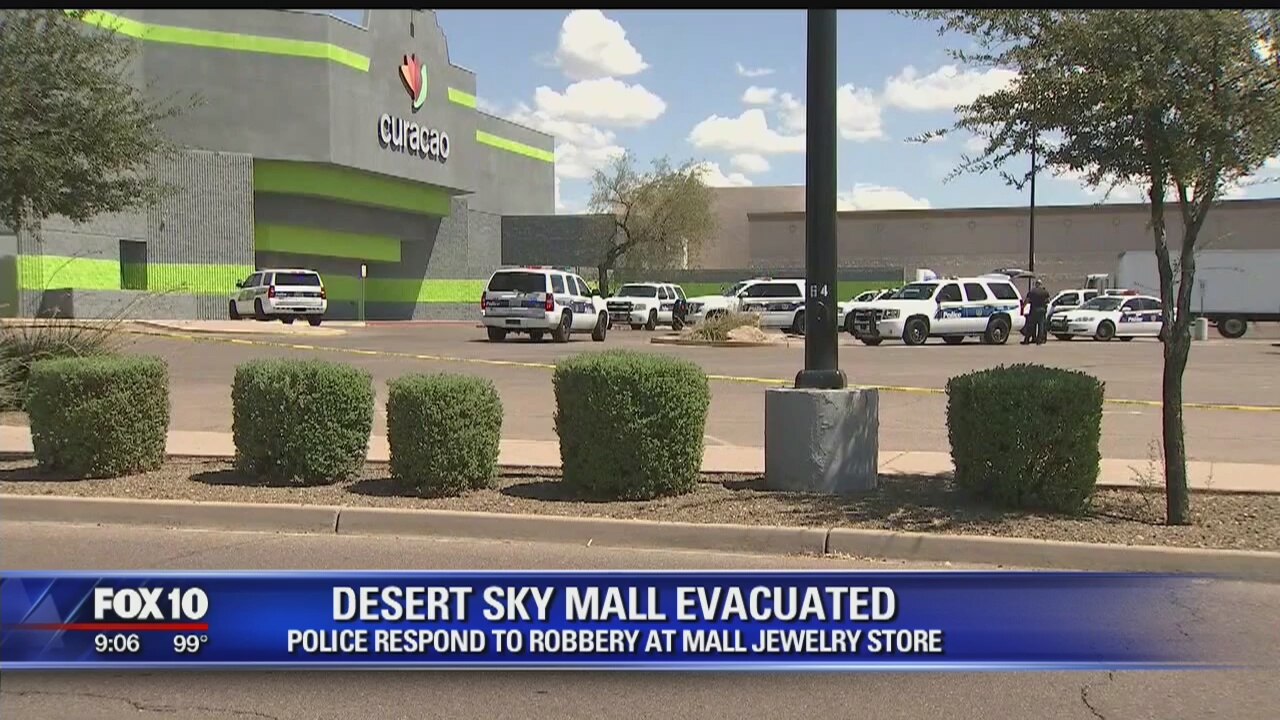 Tense moments at Desert Sky Mall today. Witnesses say they thought they were hearing gunshots but police say they sounds were coming from a metal rod used to break a glass case during a robbery at the Mercado de Los Cielos jewelry store.�