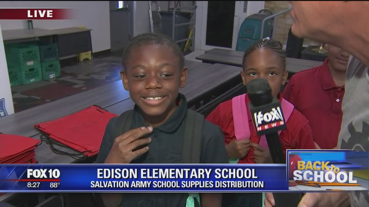 FOX 10's Cory McCloskey visits Edison Elementary School where the Salvation Army is handing out backpacks and school supplies to students.