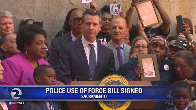 California Gov. Gavin Newsom signed a measure on Monday aimed at deterring shootings by police, inspired in part by the officer-involved shootings of Sacramento's Stephon Clark, Vallejo's Wille McCoy and Oakland's Oscar Grant.