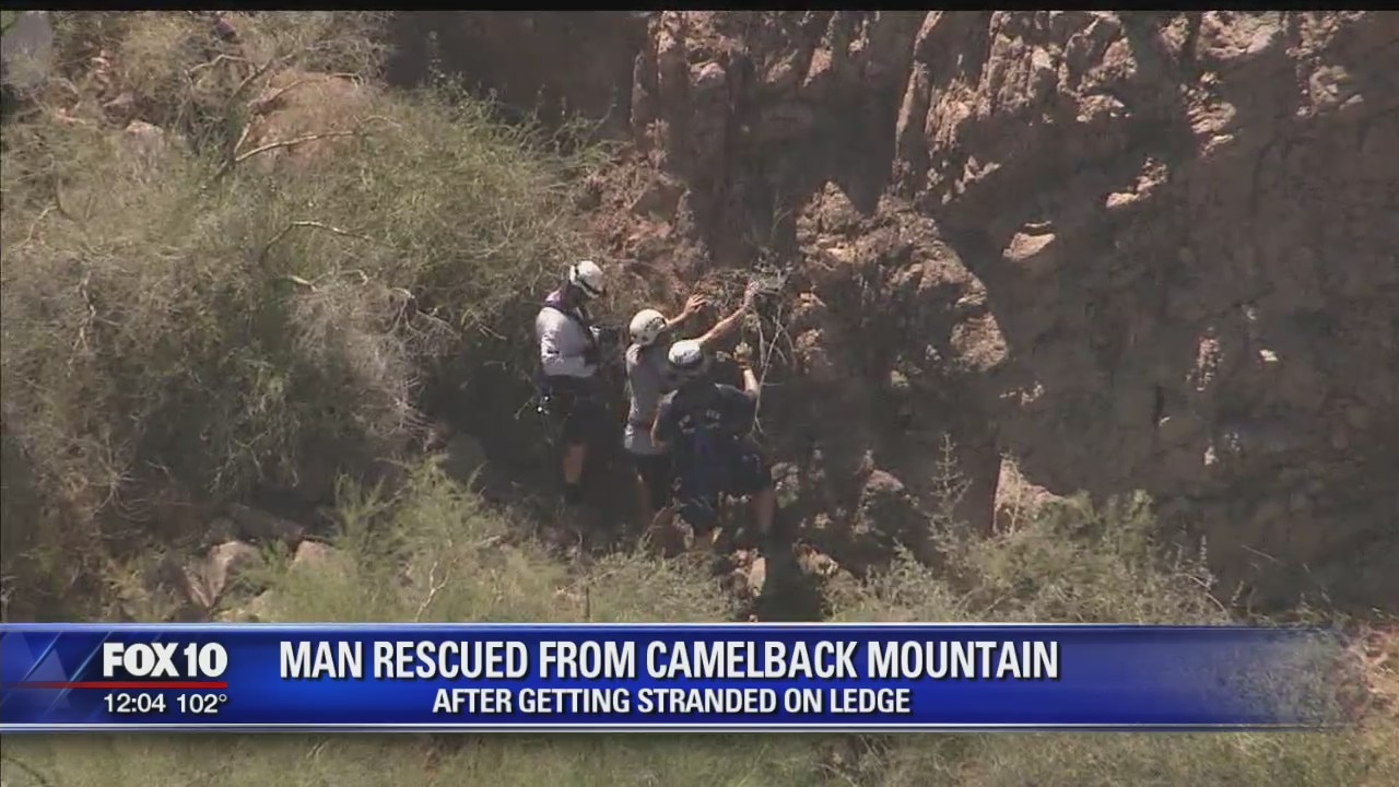 Crews have rescued a rescue man who was stuck on a ledge at Camelback Mountain.