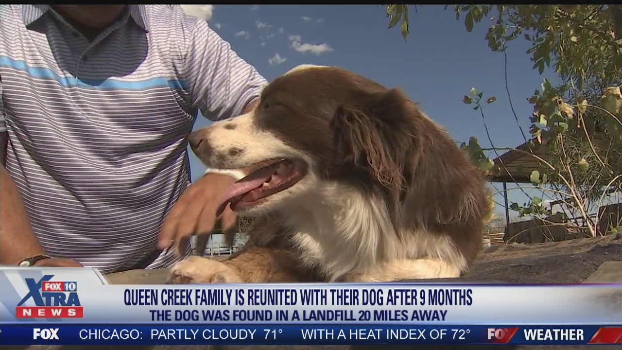 Reunited and it feels so good. After nine months apart, a Queen Creek family and their dog are back together again. The Australian Shepherd, Huckleberry, ran away on New Year's Eve and the family has been searching ever since.�