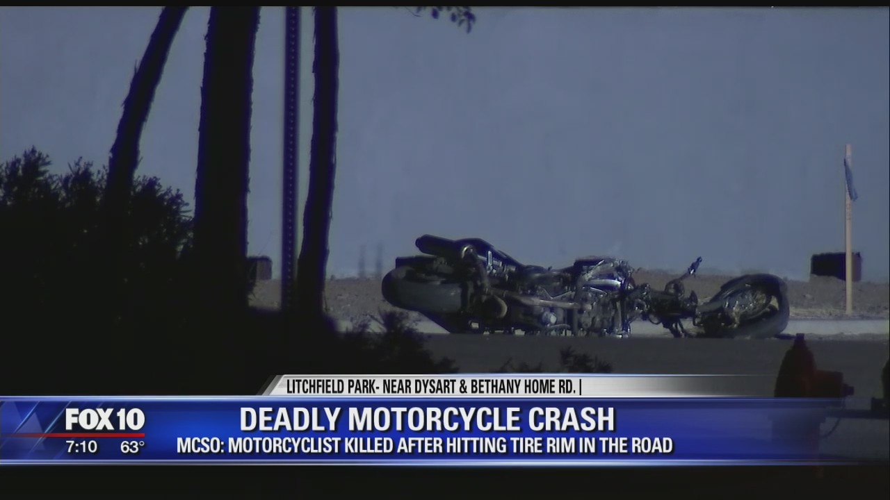 According to the Maricopa County Sheriff's Office, the crash happened early Thursday morning near Bethany Home Road and Dysart Road when the man hit a tire rim that was in the road while riding his motorcycle, causing him to crash.