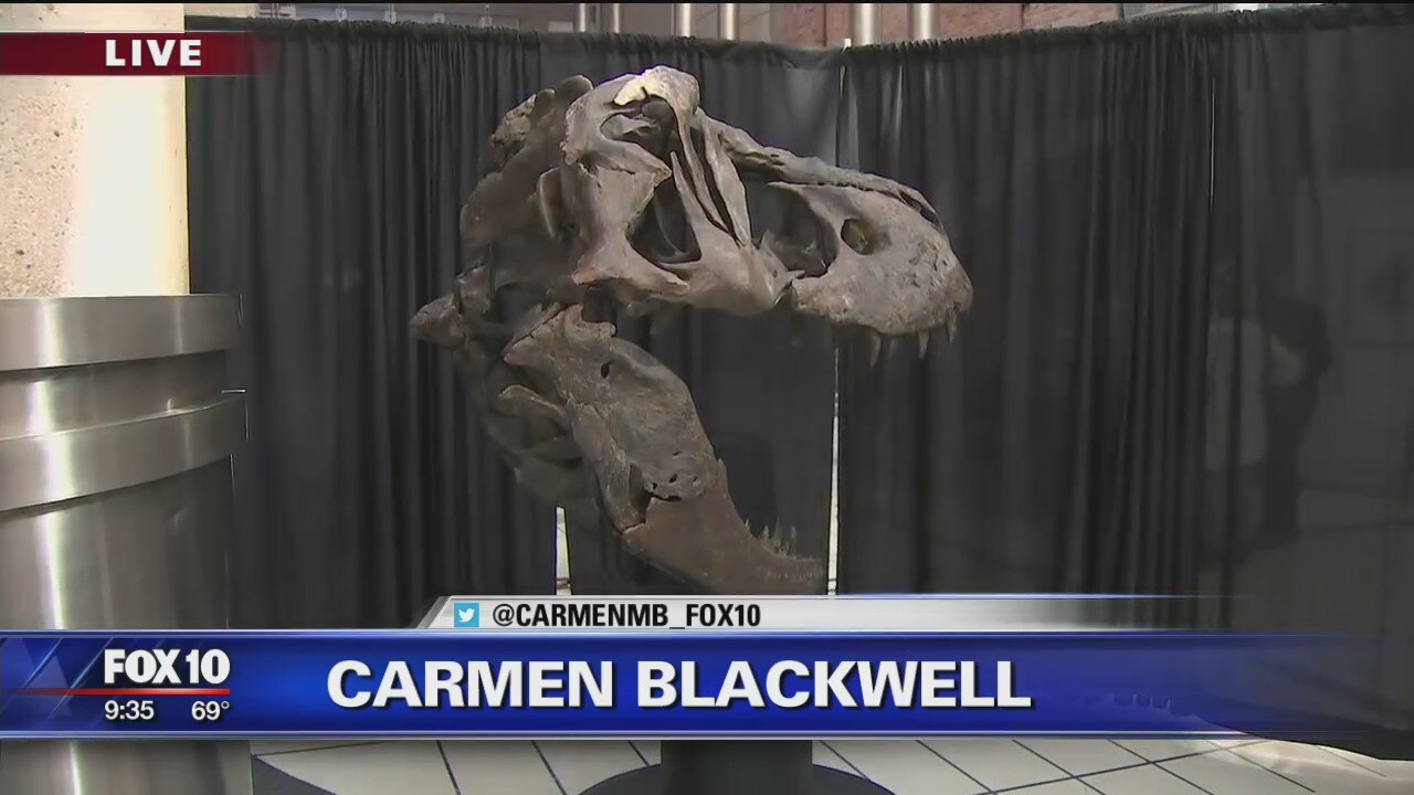 This is the fossilized skull of Victoria, one of the largest and second-most complete T-Rex skeletons in the world, and her first exhibition stop is here at Phoenix City Hall.