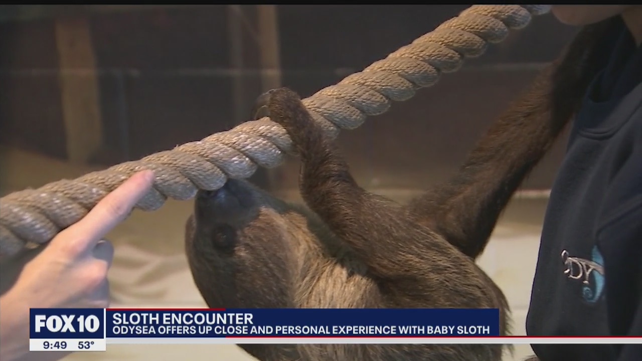 Get up close and personal with the newest member of the aquarium, a sloth, at Odysea.