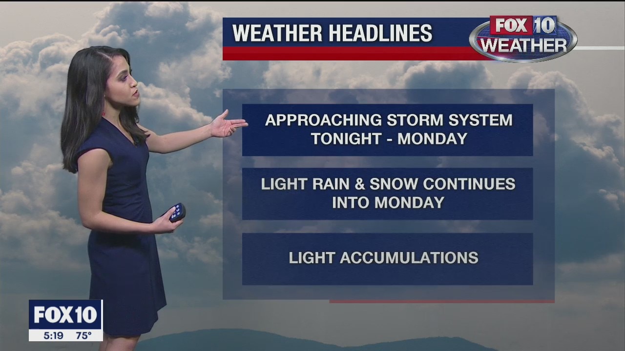 Monday has a chance of rain and temperatures in the mid-60s, but we will be warming beginning Tuesday up as the storm system heads east!
