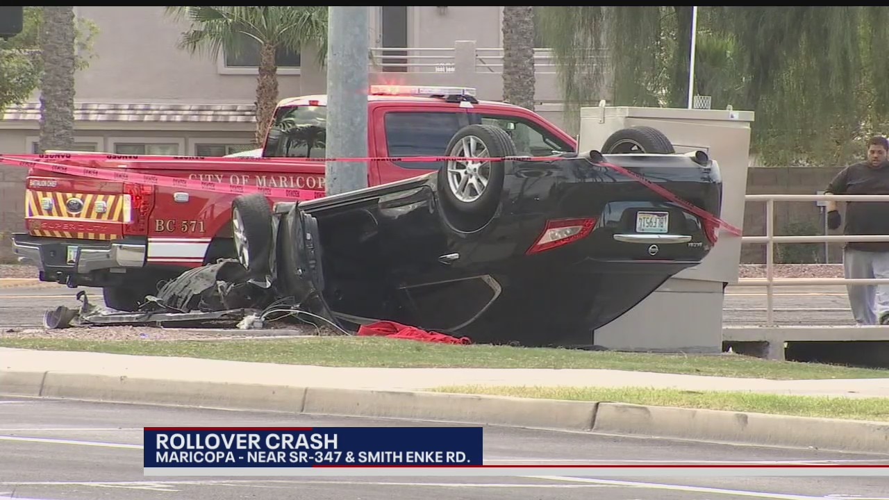 Rollover crash takes out traffic light control box in Maricopa