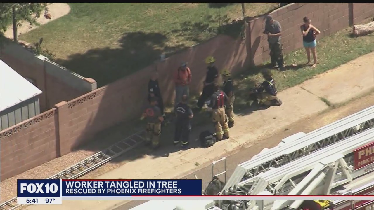 Worker rescued after getting tangled in tree in north Phoenix neighborhood