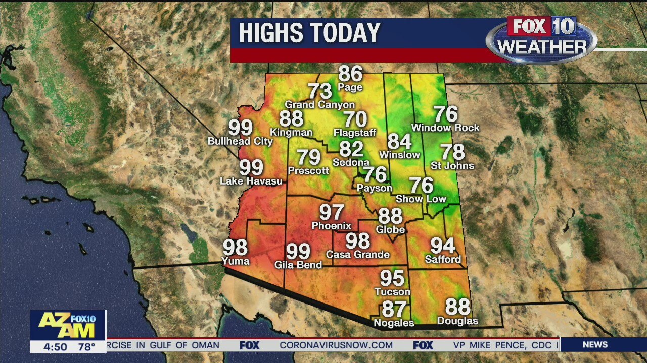 Sunny skies and warm temps today in the Valley with a high near 97°