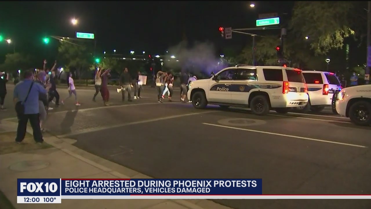In Phoenix, protesters gathered near 3rd Avenue and Washington and then marched towards the Phoenix Police headquarters. Protesters who marched towards the Arizona State Capitol�were met by police at around 10:00 p.m. Video taken by FOX 10 crews at the scene showed some officers armed with pepper spray.