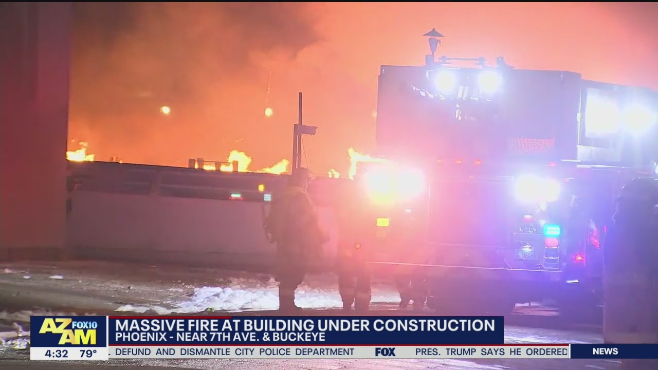 Fire crews battle large fire at 4-story apartment complex under construction near Downtown Phoenix