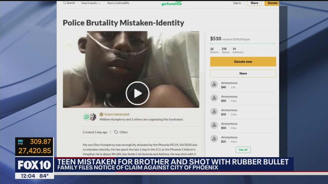 Family of teen mistaken for brother, shot with rubber bullet files notice of claim against City of Phoenix