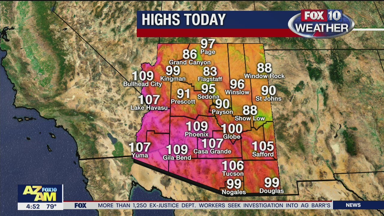 We'll see some above-average heat today with a high near 109?, along with some air quality warnings in effect across the state.