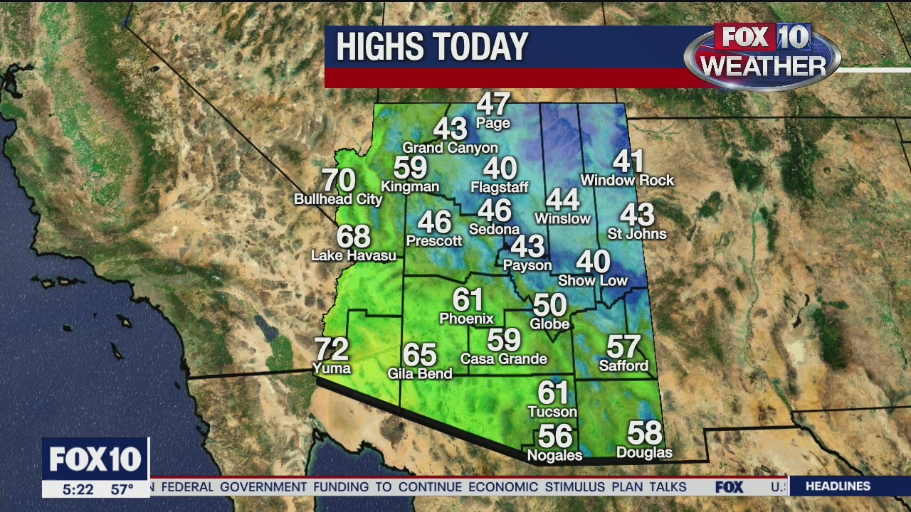 Rain in the forecast today in the Valley with a high near 61?