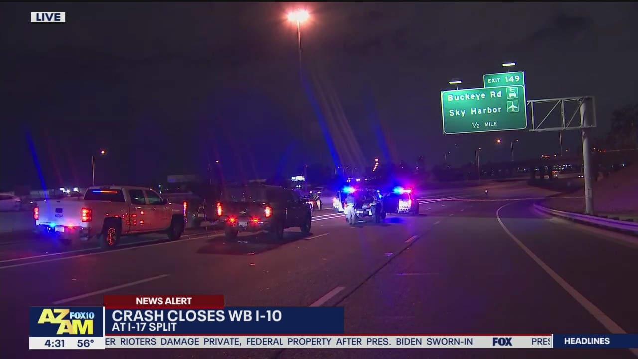 The I-10 westbound is closed near the I-17 interchange after a serious crash overnight that left at least one person injured. All traffic is being diverted onto the I-17 northbound.