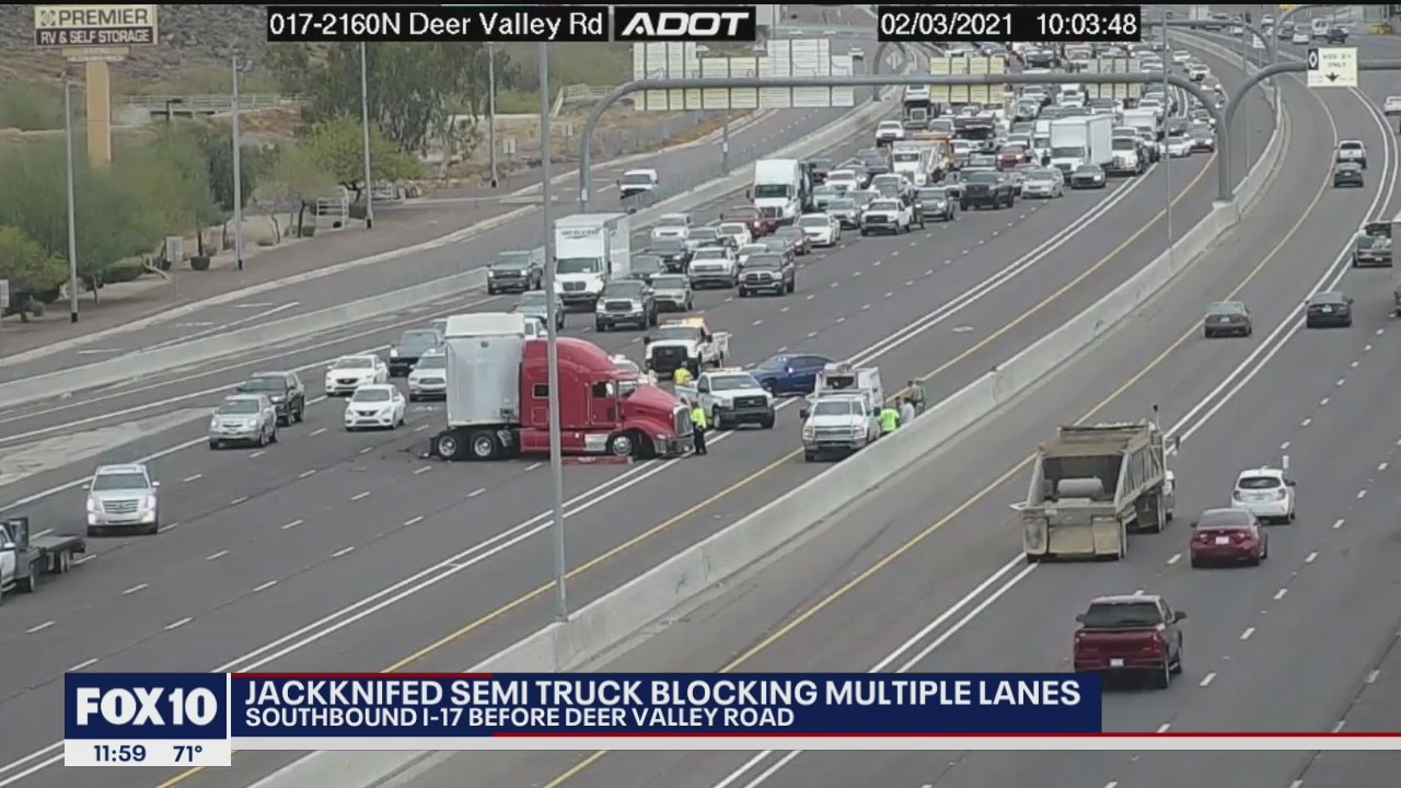 Jackknifed semi truck blocked multiple lanes of I-17