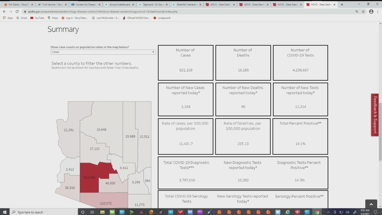 Latest coronavirus numbers in Arizona - 3/4/21