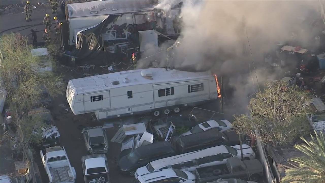 Firefighters battle trailer fire in Phoenix