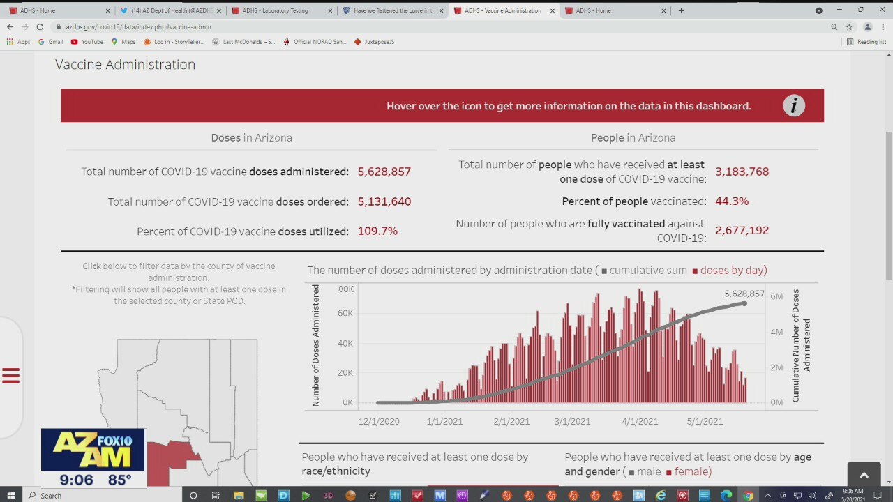 Latest coronavirus numbers in Arizona - 5/20/21