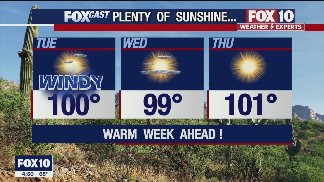 Clear skies for today with a high of 95?, but the 100s are on the way.