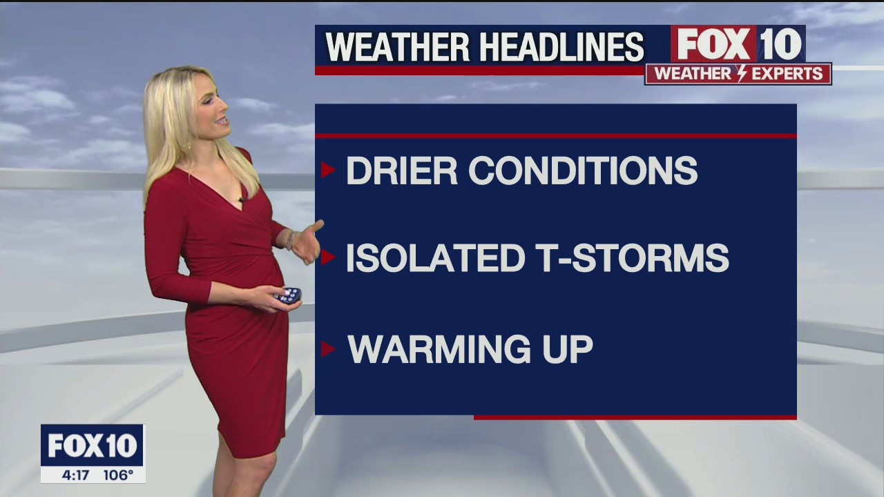 After a weekend with some wet weather, our temperatures are heating up again with drier conditions as well.