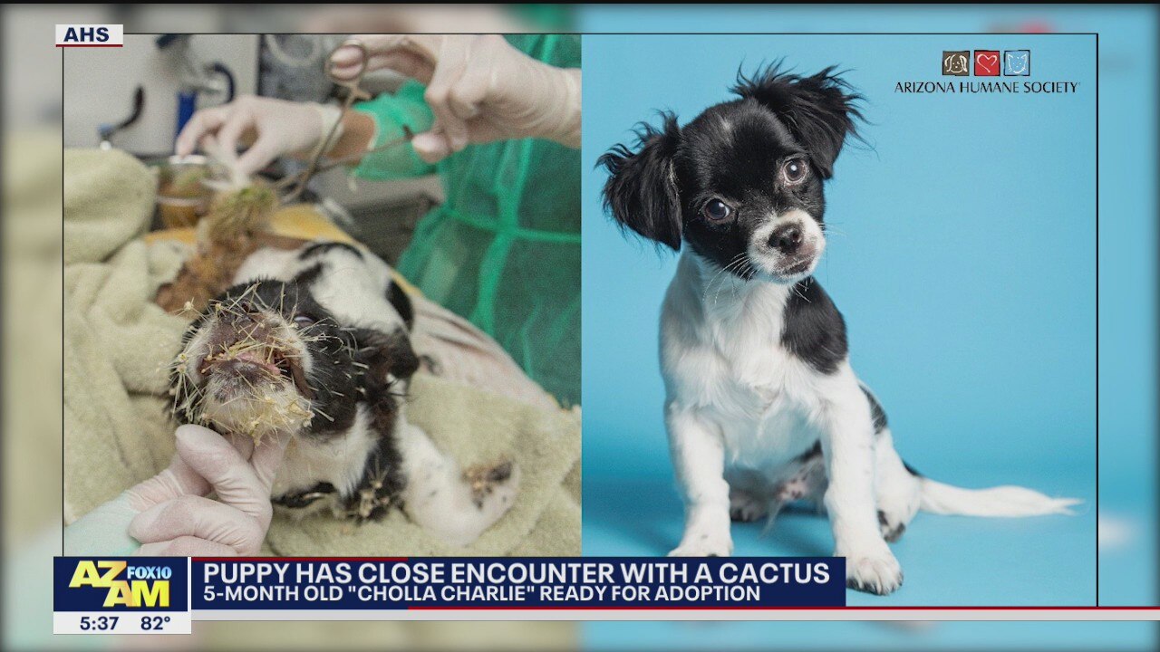 5-month-old "Cholla Charlie" had a run-in with a cactus last month in Surprise. The puppy has been on the mend at the Arizona Humane Society and is now ready to be adopted.