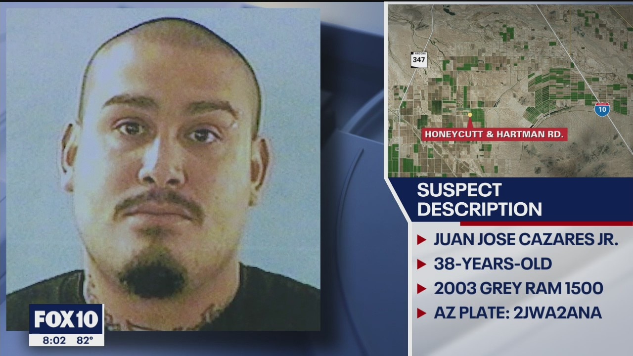 Police believe the suspect is 38-year-old Juan Jose Cazares Jr. He may be driving a gray 2003 Dodge Ram 1500 pickup truck with an Arizona license plate 2JWA2ANA.