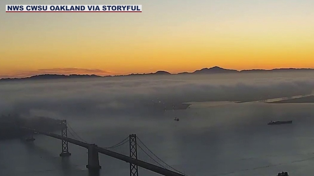 Timelapse catches low lying clouds drift over the San Francisco Bay
